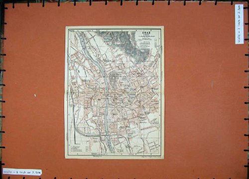 1929 MUR de Rivière de Graz de Plan de Rue de l'Autriche de Carte Couleur