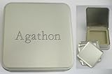 4 sous-verres dans une boîte gravée, personnalisée (en métal) avec un texte: Agathon