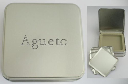 4 sous-verres dans une boîte gravée, personnalisée (en métal) avec un texte: Agueto