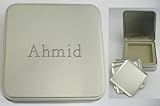4 sous-verres dans une boîte gravée, personnalisée (en métal) avec un texte: Ahmid