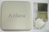 4 sous-verres dans une boîte gravée, personnalisée (en métal) avec un texte: AidanaContient 4 sous-verres. Taille de la boîte: 120 mm x 120 mm x 38 mm Taille du sous-verre: 90 mm X 90 mm