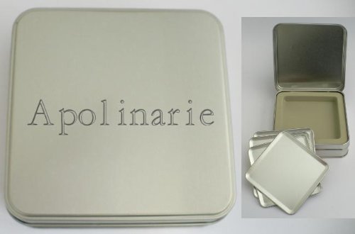4 sous-verres dans une boîte gravée, personnalisée (en métal) avec un texte: Apolinarie You can try to find the full description and product details.